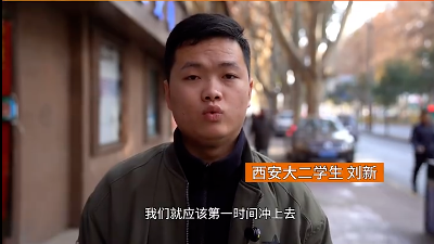 西安培华学院学生 刘新:“当他人需要帮助时,我觉得我们就应该第一时间冲上去帮助他人,这不仅对于我来说,对于每一个大学生来说都应该是一件很平常、很普通的一件小事。”