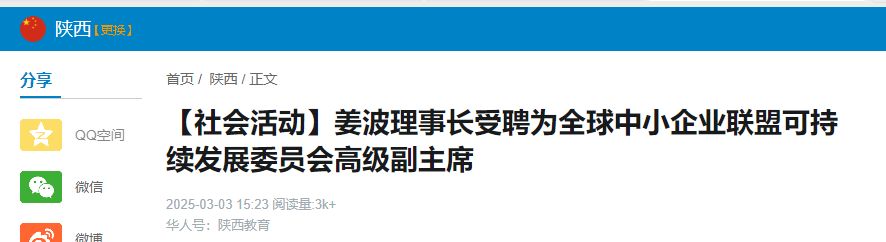 会上,西安培华学院姜波理事长受聘为全球中小企业联盟可持续发展委员会高级副主席,武尔夫先生为其颁发聘书。
