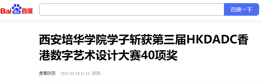 近日,第三届HKDADC香港数字艺术设计大赛(秋季赛)获奖名单正式公布。西安培华学院传媒与设计学院学子在本次大赛中表现亮眼,共斩获二等奖12项、三等奖27项及优秀奖1项,总计40项荣誉。