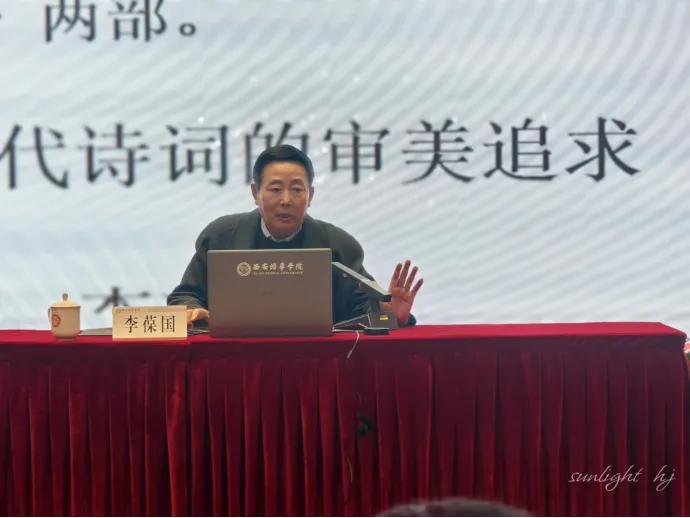 讲座中,李葆国先生从音乐演唱切入,阐述了系统学习诗歌基础知识对提升诗词创作水平的重要性,强调增加诗感的关键作用。他结合自身创作经验,提出诗词创作应明确“四境”——语境、情境、心境、意境,并深入解析了诗歌创作中“诗言志”的信念,倡导遵循温柔敦厚、中直含蓄的艺术主流,展现“乐而不淫,哀而不伤、夸而有节、饰而不诬”的中和之美。李葆国先生认为,“体贵正大、志贵高远、气贵雄浑、韵贵隽永”应成为当代诗歌审美追求的重要方向。在分析过程中,他既引用古典诗词名篇,又结合当代作家的优秀诗词作品,深入浅出地阐释诗歌审美内涵,为听众指明创作方向。