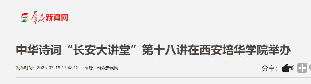 诗词,作为中华文化的璀璨瑰宝,承载着中华民族深厚的精神底蕴与审美追求。本次讲座不仅让西安培华学院师生近距离领略了诗词的独特魅力,深入了解中华优秀传统文化的博大精深,更在校园内营造出“爱诗词、学诗词、创诗词”的浓厚氛围,有力推动了书香校园建设。同时,陕西省诗词学会作为西安培华学院的实践基地,本次活动也是校企深度合作的典范之作。讲座的成功举办,显著提升了西安培华学院的文化影响力,充分彰显了学校对中华优秀传统文化的高度重视以及在传统文化教育领域取得的丰硕成果。