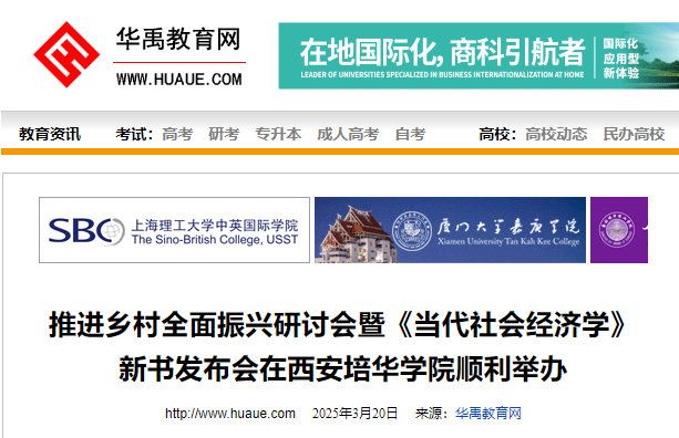 为深入贯彻落实党的二十大及二十届三中全会精神,全面落实2025年中央一号文件部署要求,全面推进乡村振兴战略,凝聚智力资源,发挥高校优势,助力陕西省县域经济高质量发展,3月19日下午,由陕西省经济学学会乡村建设研究会、西安培华学院主办,中共陕西省委党校、西北大学出版社协办,西安培华学院乡村振兴研究院承办的“推进乡村全面振兴研讨会暨《当代社会经济学》新书发布会”在明德楼报告厅举行。省内专家学者、政府代表、企事业单位代表、培华师生200余人齐聚一堂,共商乡村振兴发展大计。