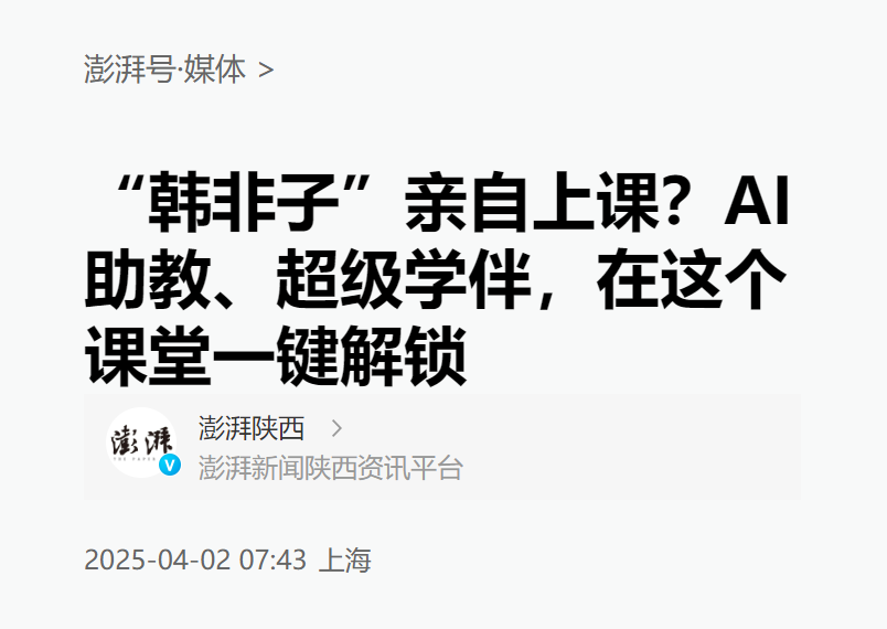 贾老师通过AI软件制作的韩非子数字人,看似是一场穿越剧般的教学实验,实则蕴含着深刻的教育创新逻辑。让AI赋能的“数字韩非子”走进《五蠹》课堂,是一场AI赋能传统人文教育的案例。贾老师借助科技驱动的改革,让古代汉语课程超脱传统文化符号局限,化作学生启迪智慧、拓宽视野的通道。