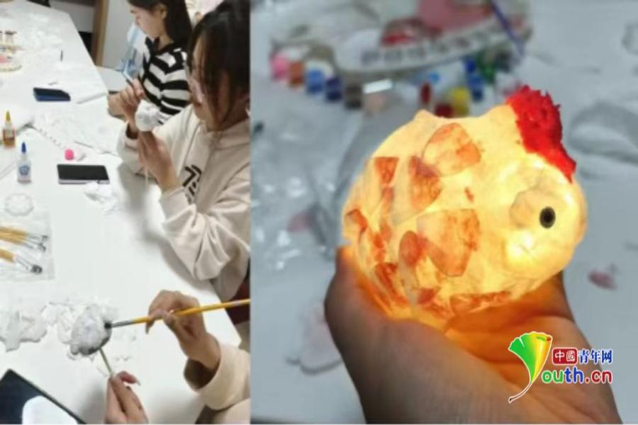 纸灯花艺制作。西安培华学院供图