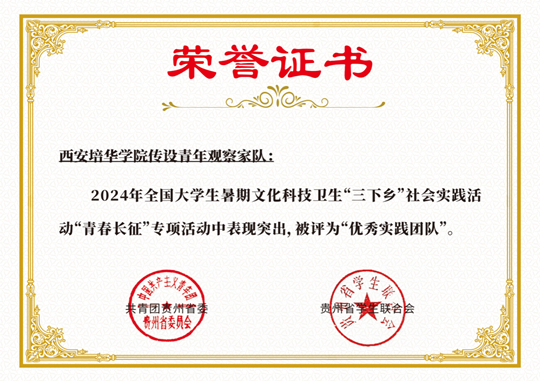 此次荣誉的获得,是对西安培华学院“实践育人”理念的生动诠释。未来,“传设青年观察家”队将持续深化“红色文化+乡村振兴”研究,以青春之智赋能基层发展,让长征精神在新时代绽放更加璀璨的光芒!