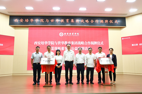 5月16日下午,西安培华学院与世华教育集团战略合作揭牌仪式暨姜岚昕董事长公益演讲活动在西安培华学院明德楼报告厅举行。双方通过资源整合、优势互补,开启产教融合协同育人新征程,为高等教育高质量发展注入强劲动力。西安培华学院理事长姜波、校长助理秦海锋、合作发展中心主任柳雨、会计与金融学院院长吴旺延与副院长丁阳参加了此次活动。