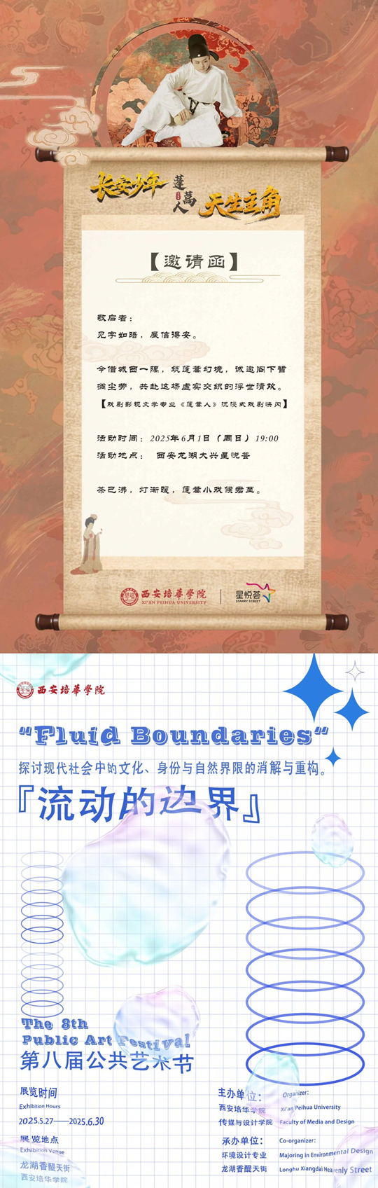 校企联动 创新出圈。西安培华学院传媒与设计学院2025年毕业设计展“主角”重磅来袭,5月31日—6月2日,西安培华学院传媒与设计学院联合西安龙湖商业在龙湖未央天街、龙湖曲江天街、龙湖香醍天街、龙湖大兴星悦荟四大街区进行“长安少年 天生主角”大型毕业设计联展活动。