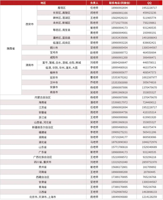 各地区联系方式