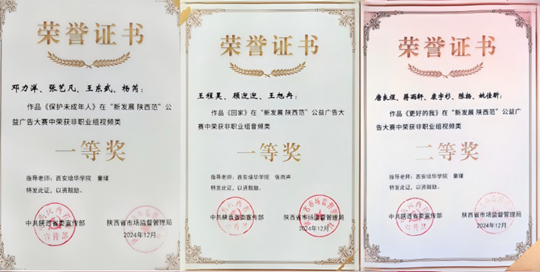 学生参加陕西省公益广告大赛获奖证书(部分)