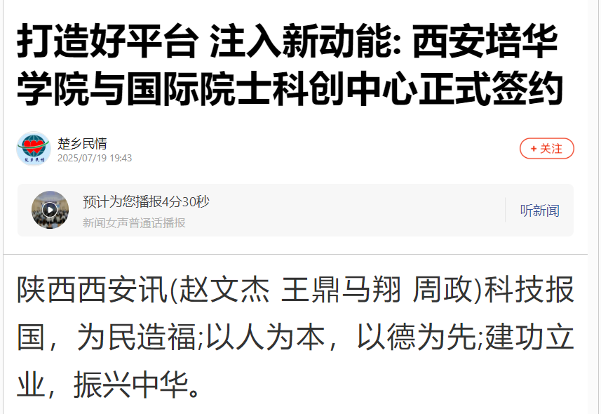 据悉,作为中华职业教育社在陕西省的唯一延续学校,西安培华学院始积极践行“手脑并用”“做学合一”的职教理念,将深化产教融合、校企合作作为立校之本与发展引擎。多年来,通过精准对接区域产业发展需求,培华学院在引育高端人才和搭建育人平台方面取得了显著成效。