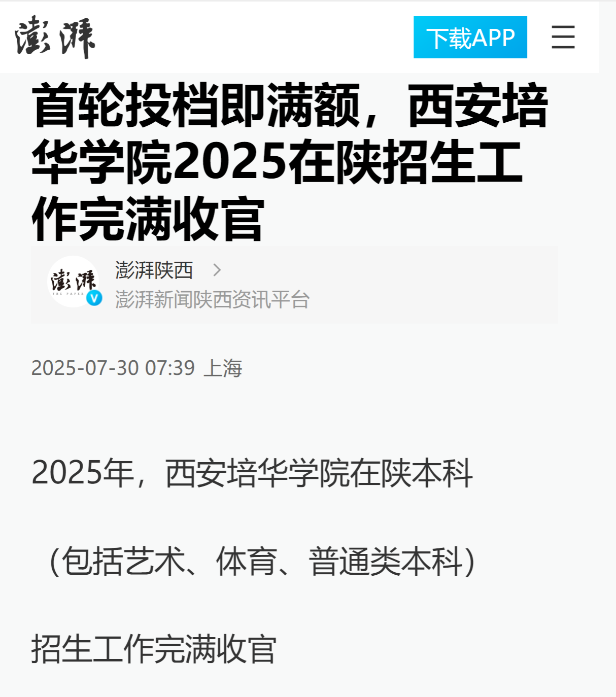 2025年,西安培华学院在陕本科(包括艺术、体育、普通类本科)招生工作完满收官,共录取3153人,所有批次所有专业组均投档即满额,招生规模再创历史新高,生源质量稳居全省同类院校前列!