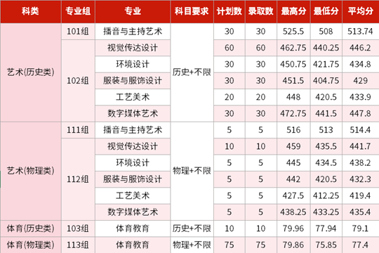 播音与主持艺术专业更以历史组最低508分、物理组最低513分圆满收官