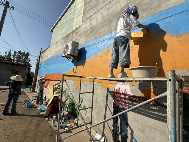 在墙绘创作之余,队员们还深入村民家中,开展“艺术进乡村”系列活动,包括教孩子们绘画、与村民交流乡村建设意见等。团队指导老师魏浩亮表示:“我们希望通过艺术的力量,激发乡村活力,让美育的种子在这里生根发芽。”野狐坡村党支部书记宋双峰对活动给予高度评价:“大学生们不仅美化了我们的村庄,更带来了新思 想、新活力,为乡村振兴注入了青春力量。”