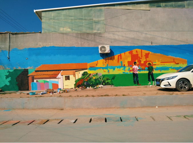 活动伊始,“破壁者联盟” 团队成员们便展现出了高度的热情与责任感。他们深入了解野狐村的文化特色和风土人情,结合当地的历史底蕴与发展需求,精心设计墙绘图案。从构思草图到色彩搭配,每一个环节都经过反复斟酌。在烈日炎炎下,成员们不怕辛苦,相互协作,有的负责勾勒线条,有的专注于色彩填充,他们用手中的画笔,一点一点地赋予乡村新的生命。