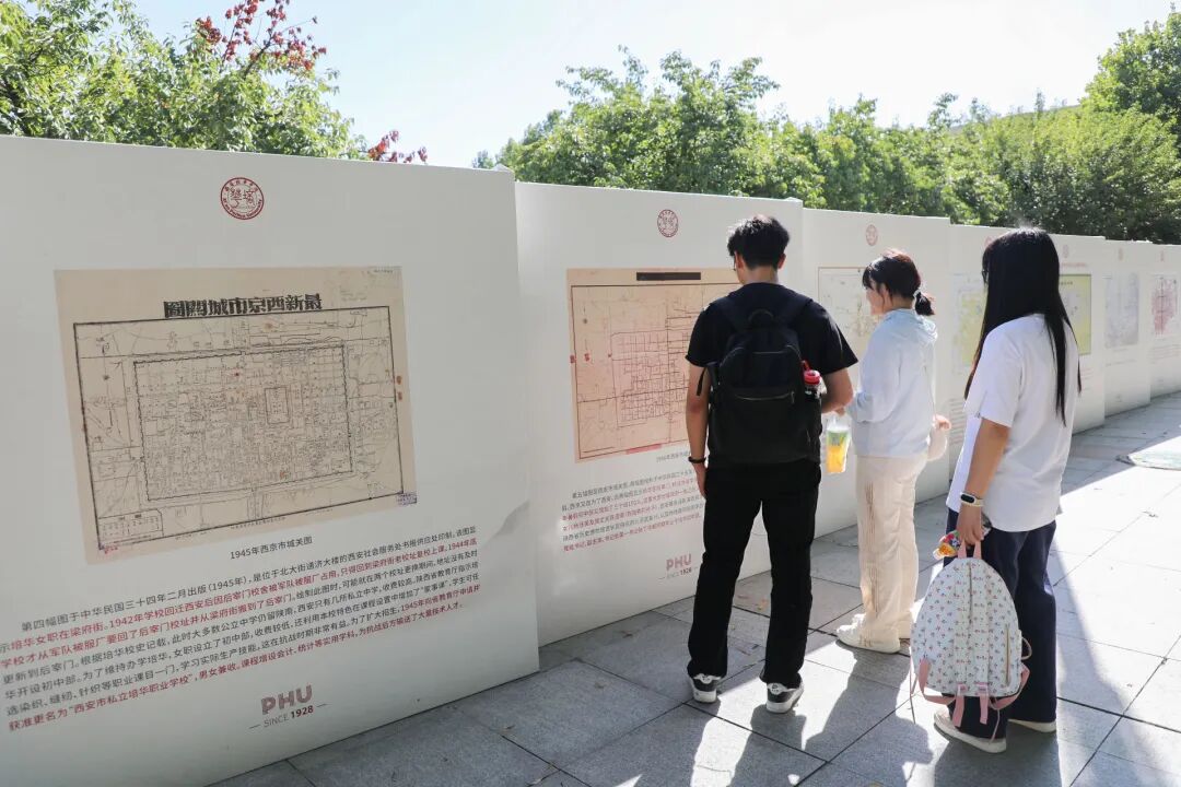《百年守望》的展板上,陈列着珍贵的历史照片,讲述着培华与西安这座城市的故事,许多学生和家长在此驻足良久,一位父亲指着展板对身边的孩子说:“看看这所学校的厚重历史,你在这里读书,我们很放心。"