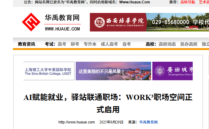 揭牌仪式后,来宾一行参观长安区就业服务驿站(西安培华学院WORK?职场空间),了解企业招聘情况及学生求职需求。西安培华学院就业服务驿站共设置九大功能区域:驿站服务区、职路大讲堂、就业直播间、求职问诊室、着装礼仪指导区、AI面试及简历指导区、职语分享路演区、求职体验营、团体辅导室,总占地面积1600多平米。驿站对标人工智能赋能就业行动,打造全方位大学生职业生涯与就业指导一体化智能培训空间。