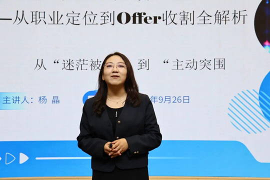 就业指导师、人力资源专家杨晶为大学生进行就业创业指导讲座,帮助学生规划职业道路,提升就业创业能力