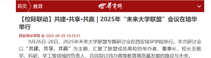 9月26日-28日,2025年未来大学联盟专题研讨会在西安培华学院举行。本次研讨会以“共建、共享、共赢”为主题,汇聚了联盟成员高校的举办者、董事长、校长及教学、科研、学工等领域的负责人,共同探讨民办高等教育高质量发展的路径与未来。