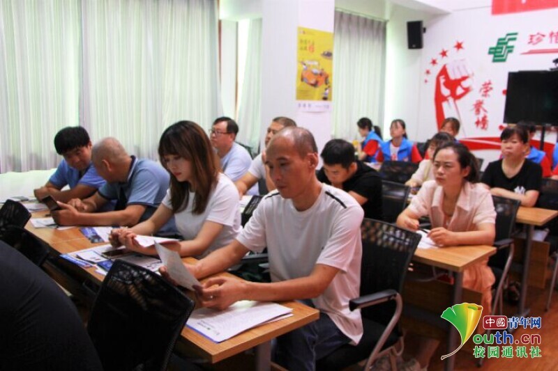 ?图为正在认真听讲禁毒防艾知识的邮政工作人员。
