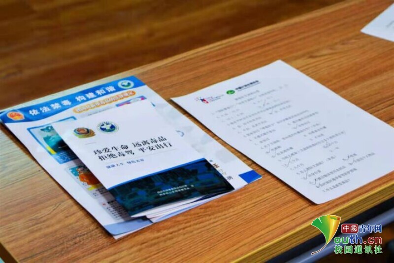 ?图为禁毒防艾宣讲队准备的宣传手册和调查问卷。