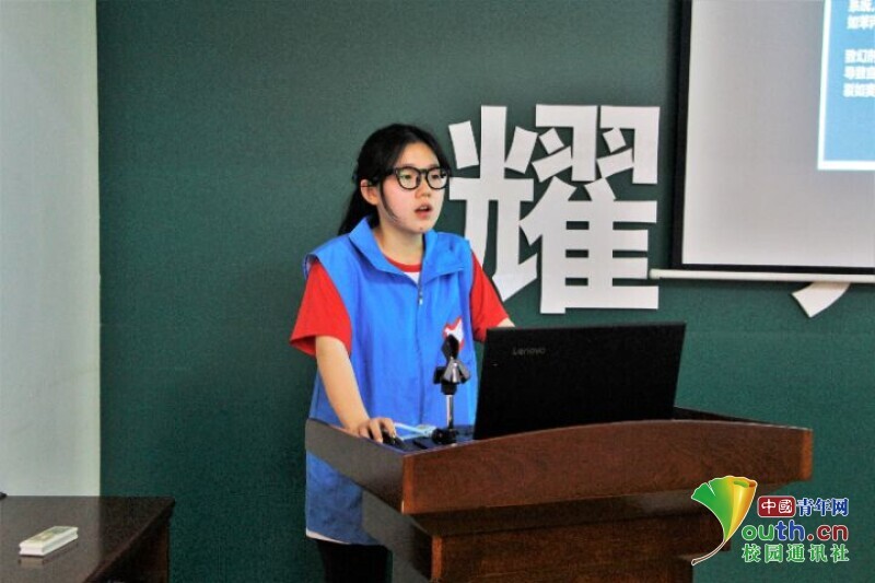 ?图为正在宣讲的禁毒防艾宣讲队成员。