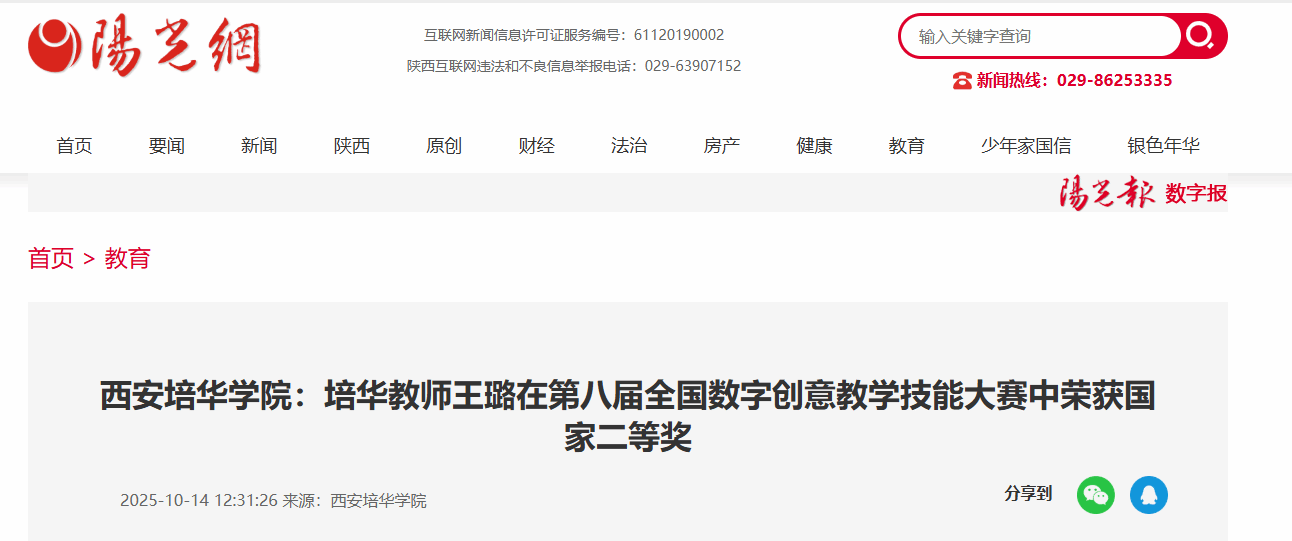 近日,第八届全国数字创意教学技能大赛国赛终评答辩在长沙理工大学落幕。经过激烈角逐,西安培华学院广播电视编导专业王璐老师凭借出色的教学设计与扎实的数字素养,在众多参赛选手中脱颖而出,荣获国家二等奖的优异成绩。