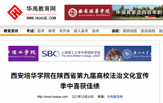 西安培华学院持续构建系统化的法治育人体系,将法治素养培育融入学生行为规范、社团活动、社会实践与公益服务各环节,形成“教学—实践—反馈—提升”的育人闭环。通过承办省级法治文化盛会、拓展数字化普法路径,依托全媒体平台打造沉浸式普法场景等多维路径,有效提升了法治教育的覆盖面与感染力。塑造了以“实践赋能、文化浸润、数字融合”为特色的培华法治教育模式,为培养具有坚定法治信仰、扎实专业能力和高度社会责任感的法律人才奠定了坚实基础。