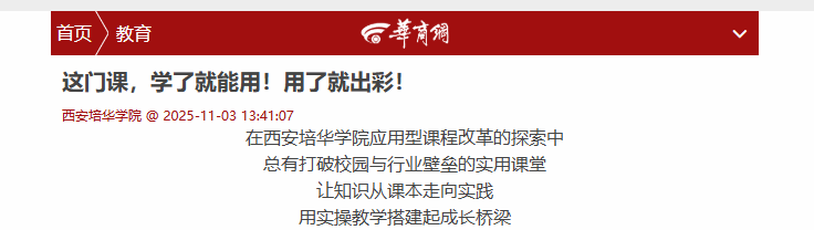 这种以能力本位为核心的课程革新,不仅让学生在“学中做、做中悟” 中积累可迁移的职业素养,更构建起“协同育人共同体”的教育新生态,为社会输送了一批批“上手快、留得住、能发展”的高素质应用型人才,更以持续深化的改革实践,为高等教育转型提供了兼具温度与力度的“培华样本”。
