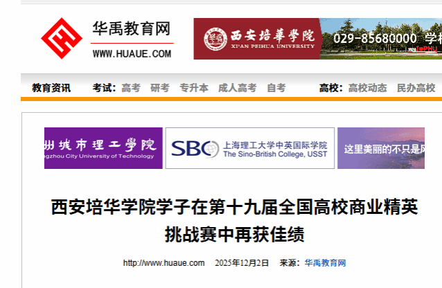 近日,第十九届全国高校商业精英挑战赛文旅与会展创新创业实践竞赛全国总决赛圆满落幕。经过多轮激烈比拼,西安培华学院成功斩获二等奖1项、三等奖6项。