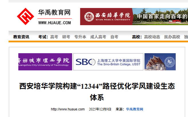 西安培华学院始终坚持以立德树人为根本任务,立足民办高等教育办学实际,系统构建并深入实施“12344”学风建设工作体系,通过“一项工程筑基、二重保障强基、三个平台赋能、四个方面聚力、四项成果见效”的协同推进路径,有效促进学风建设与思想政治教育深度融合,为培养德智体美劳全面发展的社会主义建设者和接班人奠定了坚实基础。
