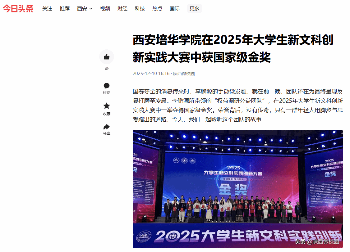 在2025年大学生新文科创新实践大赛中,西安培华学院共获得全国决赛金奖两项、银奖两项、铜奖一项……这份荣誉从来不属于某个人,而是属于以学生成长为中心的“创新育人共同体”。