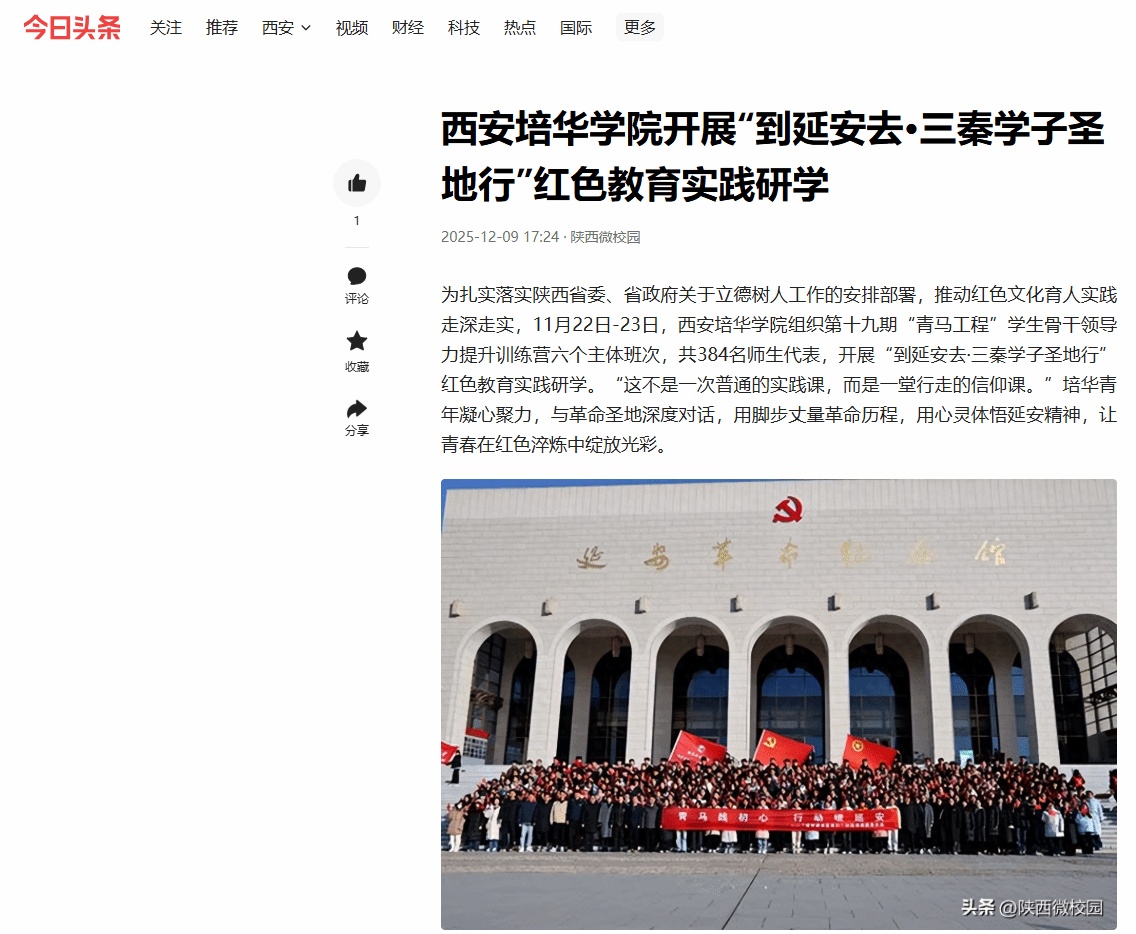 11月22日-23日,西安培华学院响应“到延安去?三秦学子圣地行”号召,组织384名青年师生搭乘红色专列奔赴革命圣地延安,以“行走的思政课”为载体开展为期两天的沉浸式红色实践研学活动。