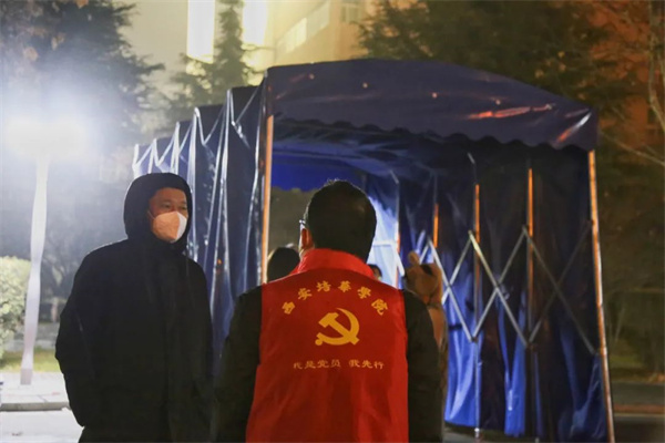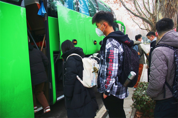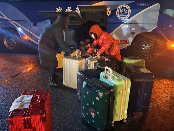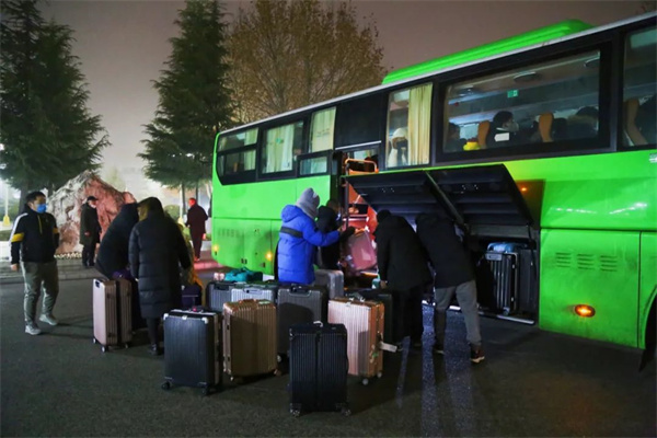 老师们早早等候在集合点清点人数、核对个人信息、返乡材料