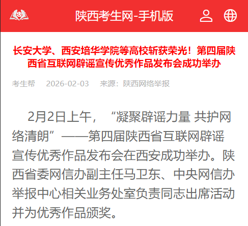 第四届陕西省互联网辟谣宣传优秀作品征集活动自2025年9月启动以来,吸引各市、省级有关部门、高校等单位和个人踊跃参与,共征集到1028件作品。经公开征集、初评、专家评审等环节,最终评选出《筑牢 “防谣拒谣” 根基 营造清朗网络空间》《清朗三秦?视觉先行》《真相防线》等41部优秀作品。这些优秀作品紧扣社会热点与民生关切,涵盖AI谣言辨析、防诈辟谣、重点群体网络权益守护等多个领域,以文字论述、海报设计、短视频和系列化解读等丰富形式生动揭露谣言危害,兼具思想性与传播力。