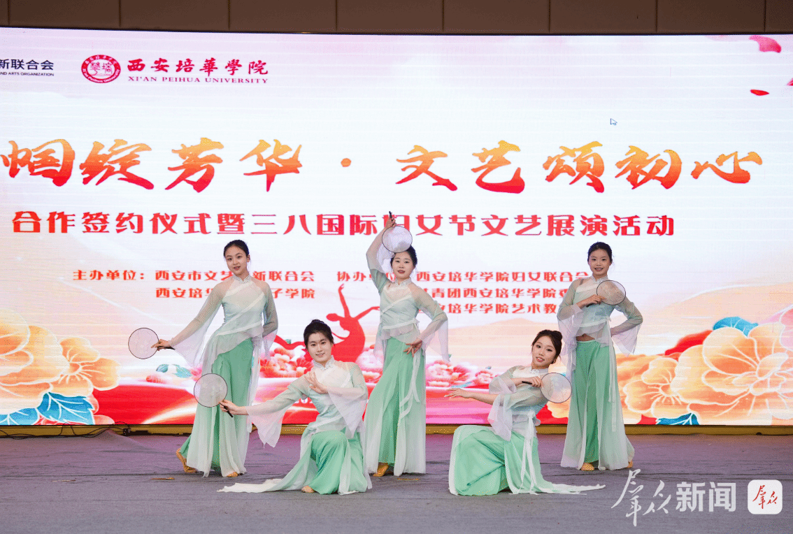 3月6日,“巾帼绽芳华·文艺颂初心”合作签约仪式暨三八国际妇女节文艺展演活动在西安培华学院举行。