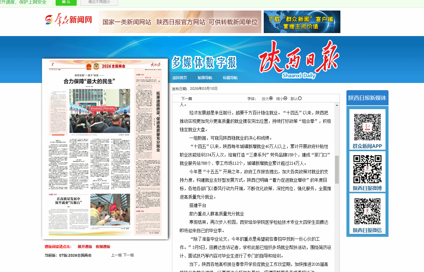 今年是“十五五”开局之年,政府工作报告提出,加大各类政策对就业的支持力度,构建就业友好型发展方式。陕西已明确“着力促进就业增收”的年度目标,各地各部门以春风行动为开端,不断优化政策、深挖岗位、强化服务,全面推进高质量充分就业。