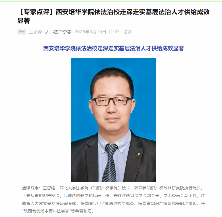 西安培华学院已形成“依法治校引领学院发展,以法学教育夯实治理基础”的鲜明特色。学校整体治理与法学教育深度融合、相互促进,共同构筑起培养高素质应用型法治人才、服务地方法治建设的扎实基础。这种整体性的治理与教育融合模式,为民办高校的法学教育发展与现代大学制度建设提供了有益借鉴。