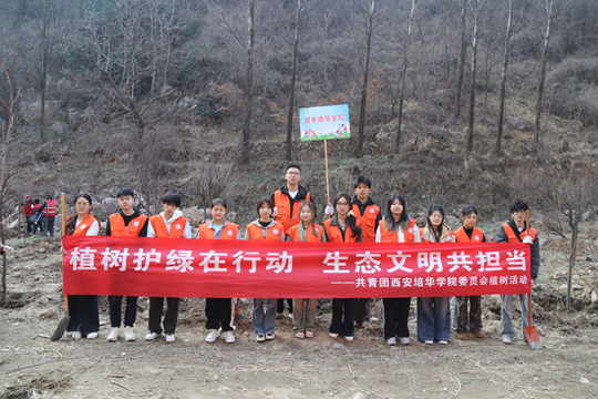 为积极响应生态保护号召,践行生态文明理念,3月10日,西安培华学院组织师生代表奔赴长安区杨庄街道库峪河村,参与“植树添绿护秦岭 守护青山践初心”主题活动,以青春之力播撒绿色希望。现场聆听林业部门技术人员传授“三埋两踩一提苗”的科学植树要领,随后挥锹铲土、扶苗填坑、提水浇灌,培华青年化身生态建设的“排头兵”,以躬身实践筑牢秦岭生态屏障,让这场生态实践成为校地共育、知行合一的生动课堂。
