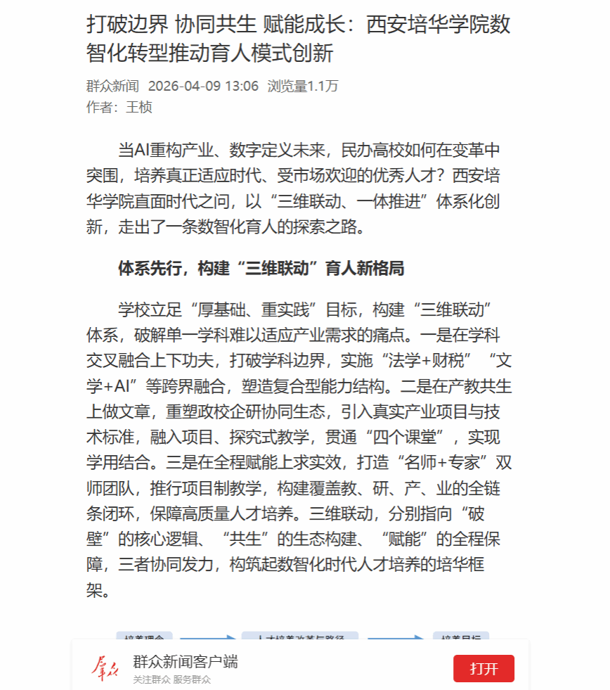 当AI重构产业、数字定义未来,民办高校如何在变革中突围,培养真正适应时代、受市场欢迎的优秀人才?西安培华学院直面时代之问,以“三维联动、一体推进”体系化创新,走出了一条数智化育人的探索之路。