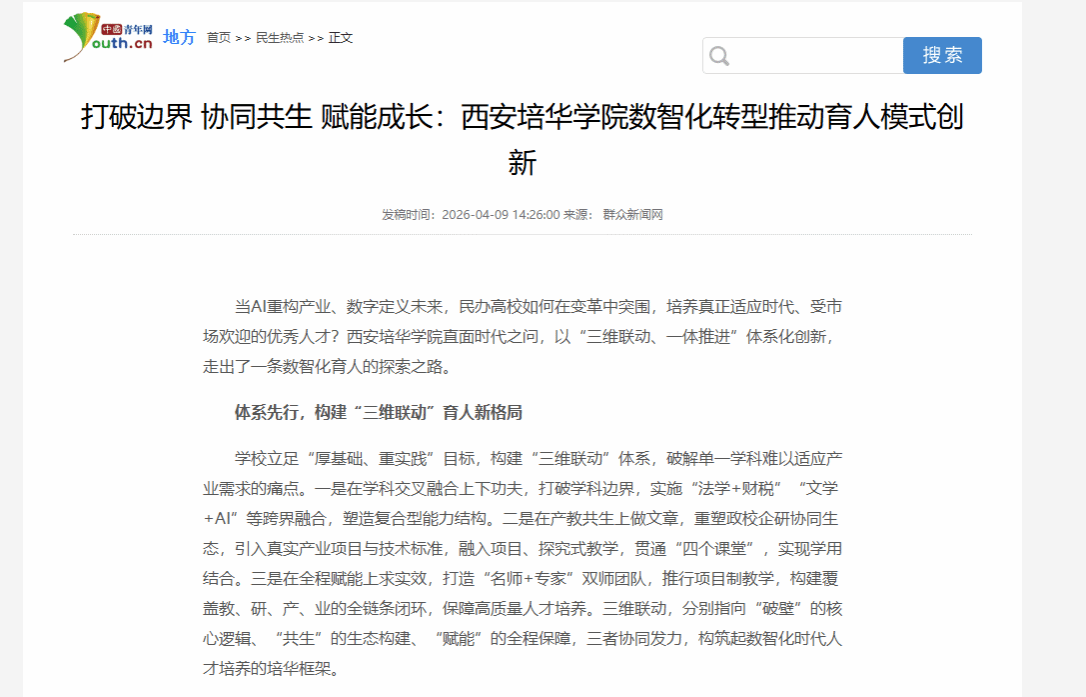 当AI重构产业、数字定义未来,民办高校如何在变革中突围,培养真正适应时代、受市场欢迎的优秀人才?西安培华学院直面时代之问,以“三维联动、一体推进”体系化创新,走出了一条数智化育人的探索之路。