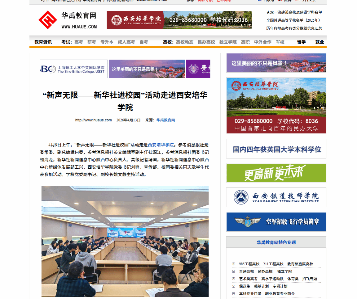 此次活动由参考消息报社、新华社新闻信息中心陕西中心与西安培华学院联合举办,旨在将权威新闻资源引入高校,探索媒体与高校协同育人的新模式。