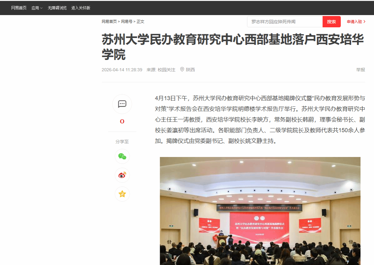 此次西部基地揭牌与学术报告会的成功举办,不仅为学校搭建了更高层次的学术研究平台,更为服务西部民办教育高质量发展注入了新的智库动能。西安培华学院将以基地为纽带,依托苏州大学民办教育研究中心的学术优势,整合校内外研究资源,聚焦西部民办教育改革发展的重点难点问题,扎实开展政策研究、案例分析和成果转化,全力打造立足西部、服务全国、特色鲜明的高水平民办教育研究高地,将以“强本申硕”战略为牵引,把基地建设与高质量发展深度融合,为我国民办教育事业的改革创新和持续繁荣贡献培华智慧与力量。