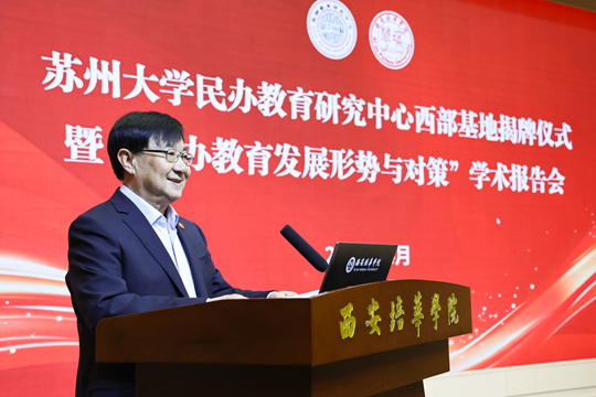 揭牌仪式后,苏州大学民办教育研究中心主任王一涛教授作了题为“如何建设一流民办高校”的学术报告。