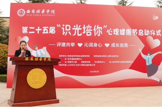 西安培华学院监事会主席、工会主席徐国富呼吁广大青年在各类实践中塑造阳光心灵,表示学校将不断挖掘育人资源,不断搭建育人平台,不断创新育人形式,全方位加强学校大学生心理健康教育工作。最后,徐国富宣布西安培华学院第二十五届“识光培你”大学生心理健康节正式启动。