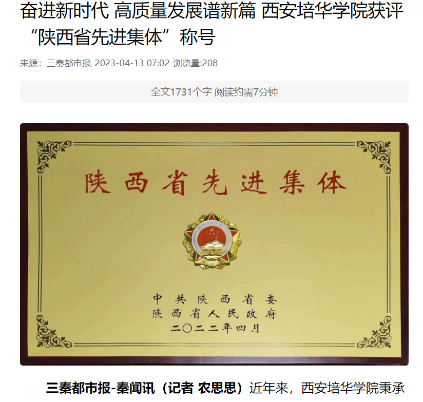 三秦都市报-秦闻讯(记者 农思思)近年来,西安培华学院秉承“以人为本以德为先”的办学理念,践行“办好人民满意的教育”,牢记教育初心,坚守育人使命,统筹推进迎评促建、教育教学和疫情防控工作,在各级政府部门的关怀下,在全体师生的共同努力下,各项事业均取得显著成绩。
