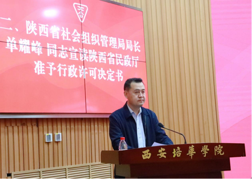 单耀峰同志宣读陕西省民政厅准予行政许可决定书