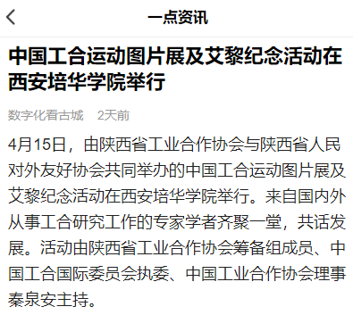 4月15日,由陕西省工业合作协会与陕西省人民对外友好协会共同举办的中国工合运动图片展及艾黎纪念活动在西安培华学院举行。来自国内外从事工合研究工作的专家学者齐聚一堂,共话发展。活动由陕西省工业合作协会筹备组成员、中国工合国际委员会执委、中国工业合作协会理事秦泉安主持。