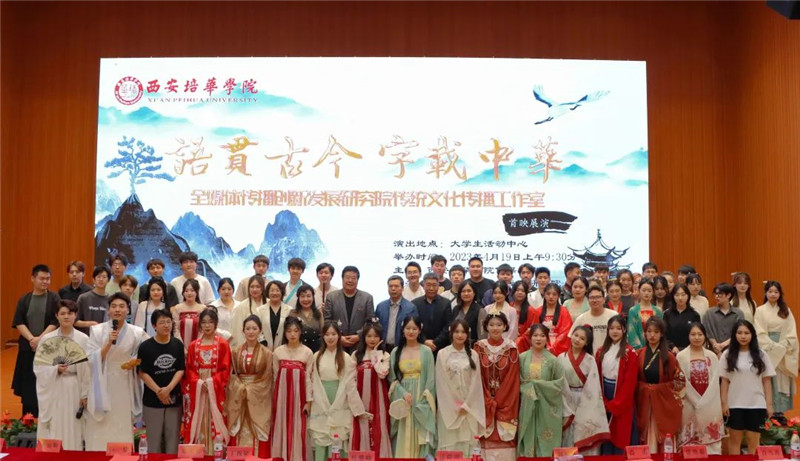 阳光讯(记者 刘杰)4月19日,西安培华学院“语贯古今、字载中华”全媒体传播创新发展研究院传统文化传播工作室首映展演在维之图书馆报告厅举行。剧目总监制、传媒学院院长杜耀峰及传媒学院师生出席了本次汇演。本次展演以诗经、史记等古代文学经典作品为主题,传承中华传统文化。