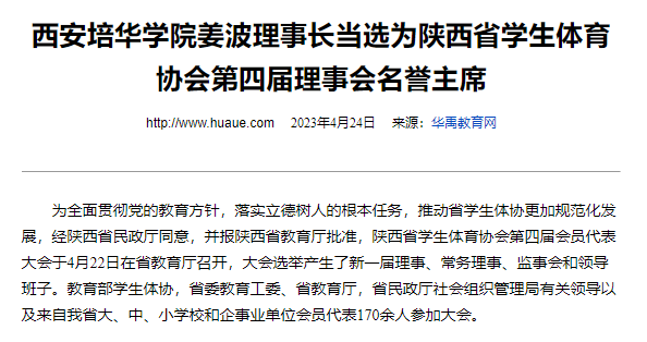 据悉,陕西省学生体育协会(STUDENTS P.E. ASSOCIATION OF SHAANXI PROVINCE)是经省教育厅同意,省民政厅批准,由陕西省各级各类学校和相关教育机构、专家、学者、体育教师及其他体育工作者自愿联合组成的学术性、非营利的全省性群众社团体育组织。组织我省学校体育教学研究、阳光体育活动经验交流,学校体育教师技能比赛,教练员、裁判员培训等相关活动,积极开展对外交流活动,切实促进我省校园体育运动发展,提高广大学生健康水平。