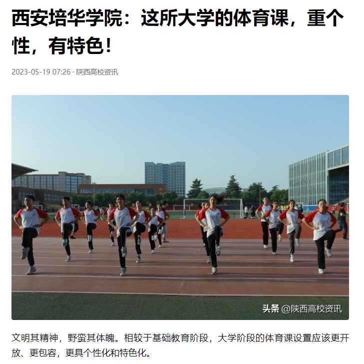 “为什么有些学生爱体育,却不爱上体育课?因为我们传统的体育课程供给并不能很好地满足当下学生的体育学习需求。况且这些需求是多样化的、个性化的。俱乐部制改革的最大好处就在于,它能够将学生的体育兴趣和体育学习兴趣有机结合起来,让学生在展现特长、发掘兴趣的同时,更好地进行体育学习,更积极地参与体育运动。”西安培华学院党委副书记、校体委主任徐国富在接受采访时表示。